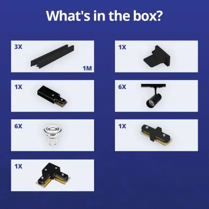 | Manufacturer Name | Complete L shaped 1-Phase Track Set Black incl. 6x Spot fixture + GU10 2700K 3W Dim – 1 x 2 meter i | |