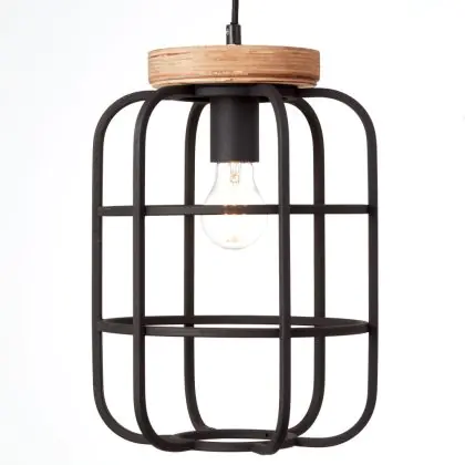 Brilliant Gwen Pendant Metal Wood Black | 250mm - Suitable for 1x E27