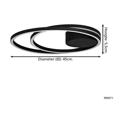 Eglo Ceiling Light Ruotale Aluminium Steel Black 36W 4400lm - 830 Warm White | IP20