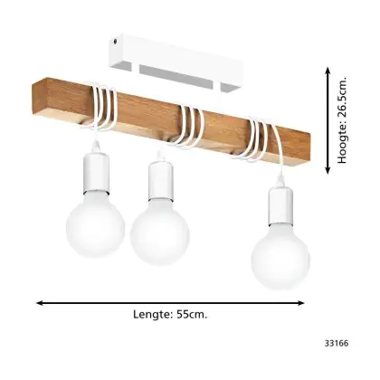Eglo Ceiling Light Townshend Steel White Wood | IP20 - Suitable for 3x E27