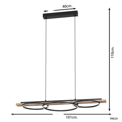 Eglo Pendant Boyal Wood Black, Rusty 40.5W 3600lm - 830 Warm White | Dimmable
