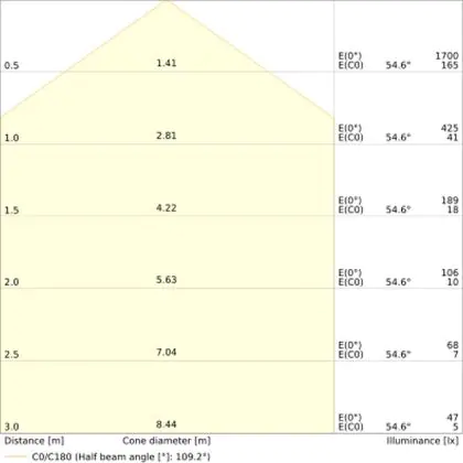 ![]() The colour code is a combination of colour rendering (CRI) and light colour (Kelvin). The first number indicates the colour rendering (1 = very poor colour rendering, 9 = maximum colour fastness). The second and third number contains the light colour. Example: the colour code 830 consists of good colour rendering (8) and warm white light (3000K). |