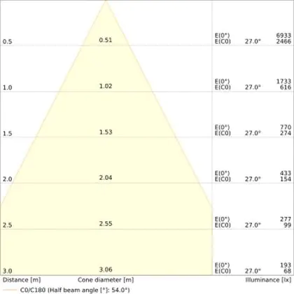 ![]() The colour code is a combination of colour rendering (CRI) and light colour (Kelvin). The first number indicates the colour rendering (1 = very poor colour rendering, 9 = maximum colour fastness). The second and third number contains the light colour. Example: the colour code 830 consists of good colour rendering (8) and warm white light (3000K). |