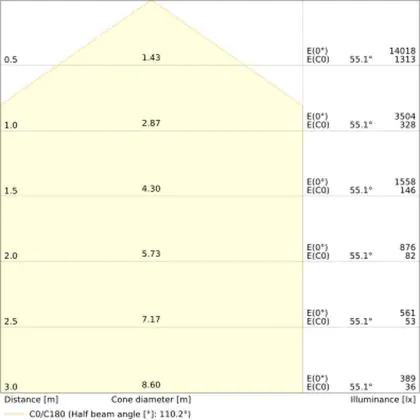 The Luminous Efficacy (lm/W) indicates how efficiently a light source uses energy. We divide the number of lumens by the wattage. The higher the number, the more efficient a product is in terms of energy consumption. LED lighting has a considerably higher lumen/Watt ratio than conventional lighting.