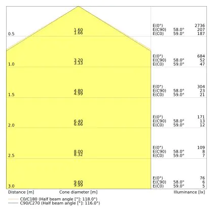 ![]() The colour code is a combination of colour rendering (CRI) and light colour (Kelvin). The first number indicates the colour rendering (1 = very poor colour rendering, 9 = maximum colour fastness). The second and third number contains the light colour. Example: the colour code 830 consists of good colour rendering (8) and warm white light (3000K). |