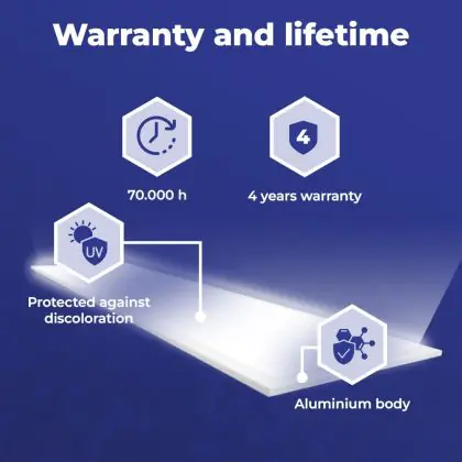 The lifespan is an indication of the number of hours a product will last. This refers only to the hours the product is actually on. LED lighting has a significantly longer lifespan than conventional lighting. LED lighting therefore lasts much longer. How long you can actually use a product depends on the extent of its (daily) use. |