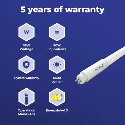 Noxion Avant LEDtube T5 Avant Extreme (Mains AC) High Output 36W 5600lm - 840 Cool White | 145cm - Replaces 80W
